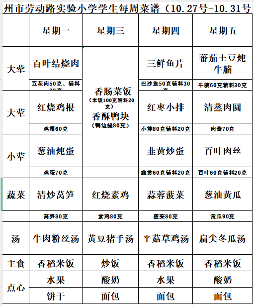 2025-2026第一学期苏州市劳动路实验小学第8周菜谱